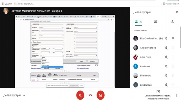 Світлана Авраменко висвітлила структур Єдиного державного реєстру судових рішень (ЄДРСР), розглянуто можливості пошуків необхідної інформації або потрібного рішення. На прикладах продемонстровала хід пошуку, а також детально роз’яснила, яка інформація повинна бути прихована в судових рішеннях.