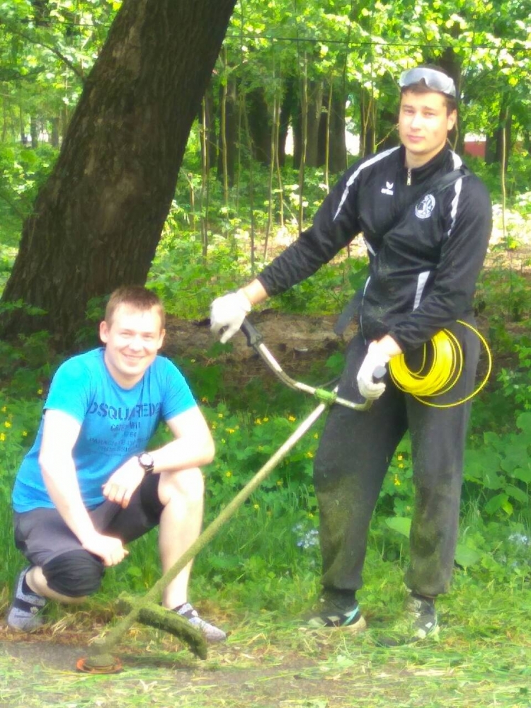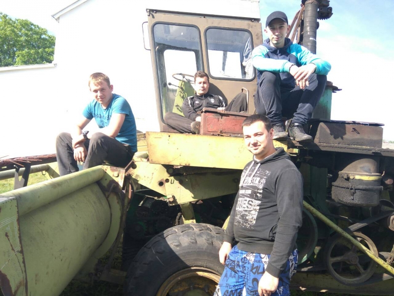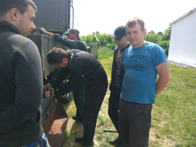 В перший робочий день студентів поділили на дві бригади, перша займалася ремонтом тракторів і комбайнів, а інша ремонтом вантажних автомобілів.
