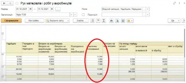 Студент Н. Смолій змоделював процес виробництва, визначив фактичне споживання матеріалів, списав витрати матеріалів на випуск продукції та врахував відрядну зарплатню співробітників. Було згенеровано звіт «Рух матеріалів і робіт у виробництві», відслідковано фактичне споживання матеріалів і робіт та проаналізовано можливі відхилення від нормативних значень.