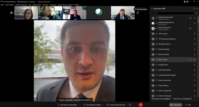 Заступник Міністра аграрної політики України з питань цифрового розвитку, цифрових трансформацій і цифровізації Тарас Дзьоба, вітаючи учасників конференції, розповів про напрями цифрової трансформації аграрної галузі та перспективи підготовки ІТ-фахівців для аграрної галузі.