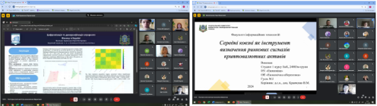 На засіданні секції «Наука про дані: технології OLTP і OLAP, машинне навчання, методи штучного інтелекту» відбулася демонстрація постерів магістрами 2-го року навчання за освітніми програмами «Програмне забезпечення інформаційних систем», «Інформаційні управляючі системи і технології» та «Комп’ютерний еколого-економічний моніторинг». Засідання проходило у дистанційному форматі і тривало шість годин з невеликою перервою. Саме стільки часу знадобилося, щоб представити результати своїх досліджень усіма присутніми.