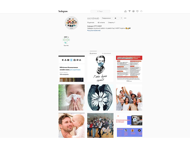 13. Відкрили сторінку кафедри у мережі Instagram (https://www.instagram.com/p/B-MzXa1gV6v), з метою інформаційної підтримки здобувачів вищої освіти. Також розміщуємо інформацію про особливості освітнього процесу в дистанційному режимі на сторінці кафедри, у Viber групах, у новинах на платформі Elearn.