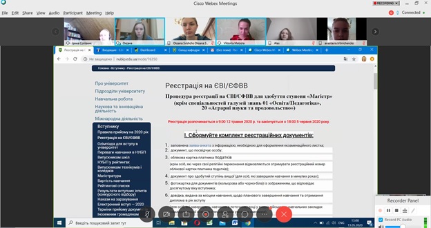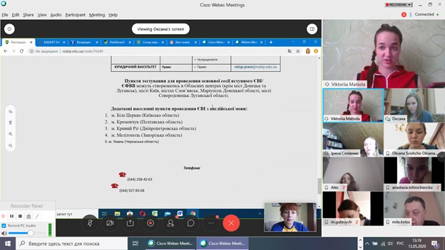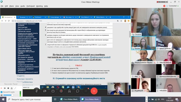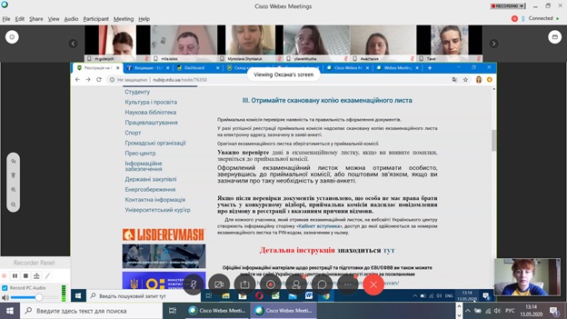 Одразу ж до слова було запрошено заступника секретаря приймальної комісії, кандидата педагогічних наук Оксану Гончарук, випускницю кафедри соціальної роботи. Оксана Миколаївна детально ознайомила з правилами прийому до магістратури, продемонструвала майстер-клас із заповнення заяви-анкети з інформацією, необхідною для оформлення екзаменаційного листка, детально розповіла, які документи потрібно підготувати для реєстрації на ЄВІ, ознайомила із процедурою здачі даного іспиту, а також відповіла на поставлені запитання.