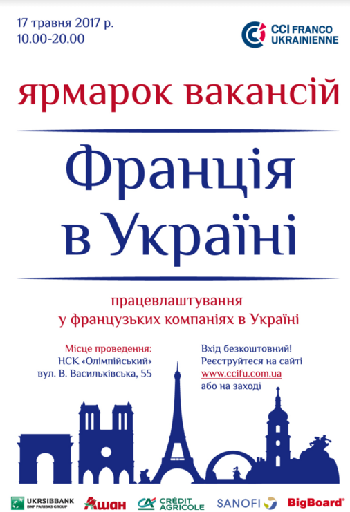 17 травня 2017 року в Києві на НСК «Олімпійський» відбудеться перший Французький ярмарок вакансій, організований Асоціацією «Французька ділова спільнота в Україні» (CCIFU). На сьогодні, CCIFU нараховує близько 120 компаній різноманітного виду бізнесу: від великих міжнародних компаній до середніх та малих.