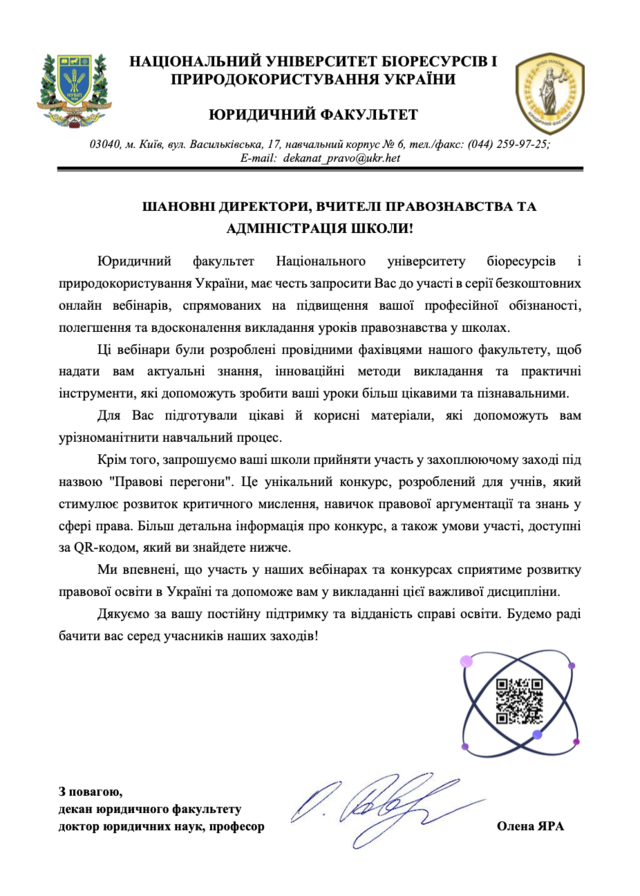 Юридичний факультет НУБіП України запрошує на серію вебінарів для вчителів правознавства! 9 вересня 2024 року 03:00 - 03:00