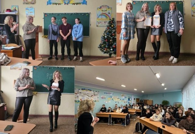 Світлана Авраменко та Анна Мельник детально зупинилися на темі вступної кампанії 2025 року, пояснили основні вимоги, серед яких необхідно набрати не менше 150 балів на національному мультипредметному тесті. Викладачки також надали поради щодо підготовки до вступу, закликали учнів серйозно поставитися до цього етапу та раціонально планувати свій час.
