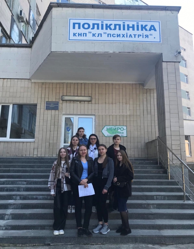 За ініціативи та безпосередньої участі завідувача кафедри соціальної роботи та реабілітації професора Ірини Віталіївни Сопівник та доцента кафедри Тетяни Вікторівни Григоренко для студентів четвертого курсу було проведено екскурсію до Київської психіатричної клініки. Завідувач 5 відділення клініки «Психіатрія» Ігор Дубінін розповів студентам про особливості психологічної реабілітації пацієнтів, які мають психологічні розлади засобами анімалотерапії та продемонстрував методики фізичної реабілітації.