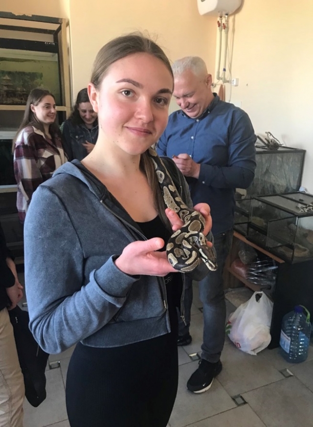 У даному відділенні клініки є свій контактний зоопарк. Є в ньому плазуни, рибки в акваріумі, папуга, шиншила, кролик та багато іншої живності. Є і хамелеон, якого зоорятівники вивезли з Ірпеня. Ці тварини сприяють психологічному відновленню пацієнтів. Наші четверокурсники також із задоволенням поспілкувались з цими тваринками, отримавши унікальний досвід анімалотерапії.