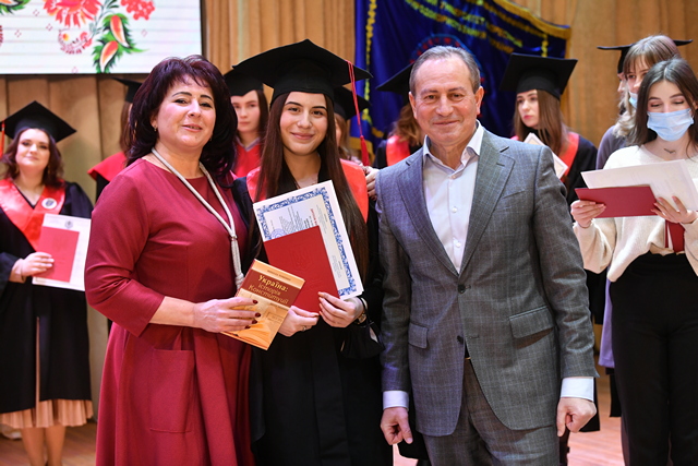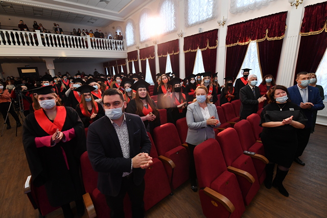Для кожного закладу освіти вручення дипломів – то фінішна подія, підбиття підсумків, усвідомлення пройденого шляху. Для гуманітарно-педагогічного факультету 2021 рік, такий нелегкий і сповнений випробувань, насправді виявився врожайним: 247 вчорашніх здобувачів другого (магістерського) рівня вищої освіти отримали дипломи про закінчення навчання у славетному закладі освіти, із них 86 магістрантів отримали дипломи з відзнакою! Такого шаленого драйву, таких щирих слів, посмішок і сліз, таких гучних аплодисментів, такого потужного конгломерату статечної мудрості і молодечого ентузіазму, моря квітів актова зала центрального корпусу № 3 в силу діючих карантинних обмежень не відчувала давно!