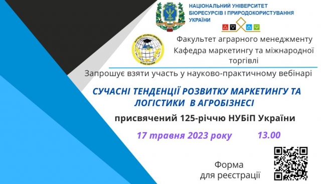 Запрошуємо до участі у науково-практичному вебінарі "Сучасні тенденції розвиту маркетингу та логістики в агробізнесі"