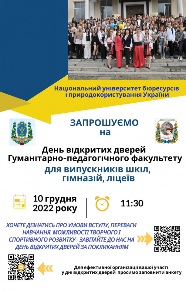 Для ефективної організації вашої участі у дні відкритих дверей факультетів та інститутів просимо завчасно заповнити анкету за цим покликанням: