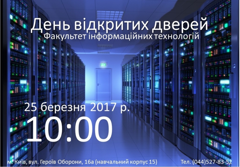 Запрошуємо на день відкритих дверей факультету інформаційних технологій 25 березня 2017 року 02:00 - 02:00