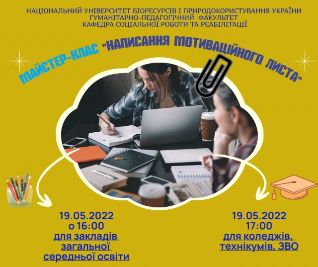 Запрошуємо на майстер-клас "Написання мотиваційного листа" 19.05.2022
