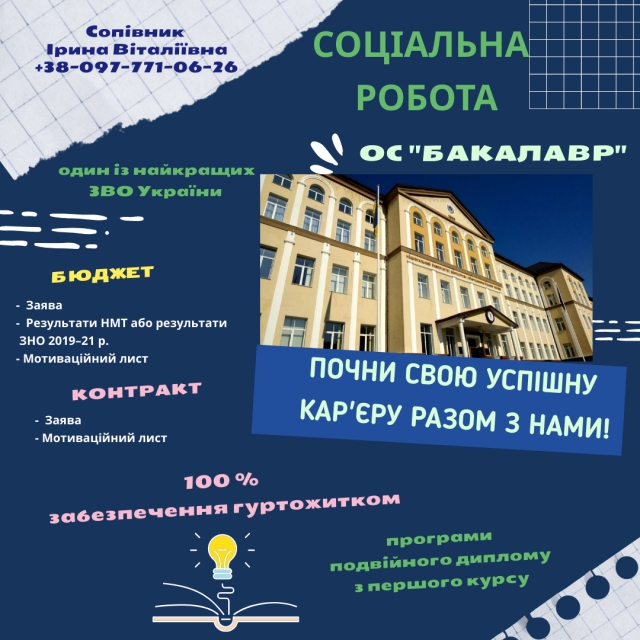 Запрошуємо на навчання за спеціальністю "Соціальна робота" та "Соціально-психологічна реабілітація"