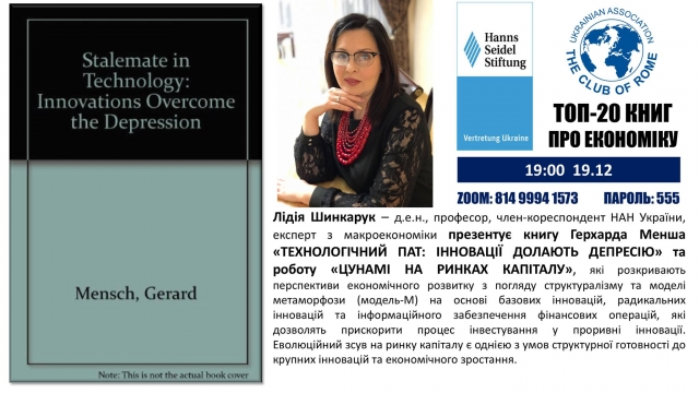 Запрошуємо на онлайн зустріч з Лідією Шинкарук, яка презентує книгу Герхарда Менша «Технологічний пат: інновації долають депресію» та працю «Цунамі на ринках капіталу»