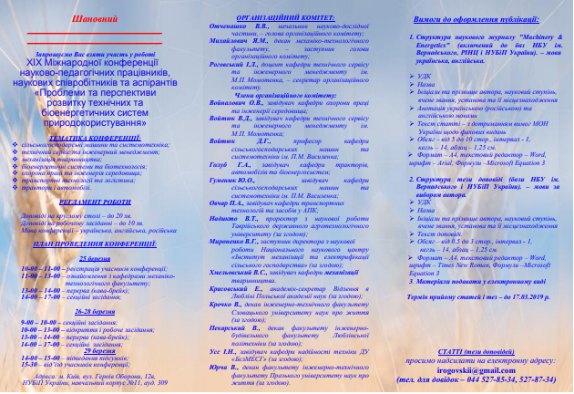 "Проблеми та перспективи розвитку технічних та біоенергетичних систем природокористування"