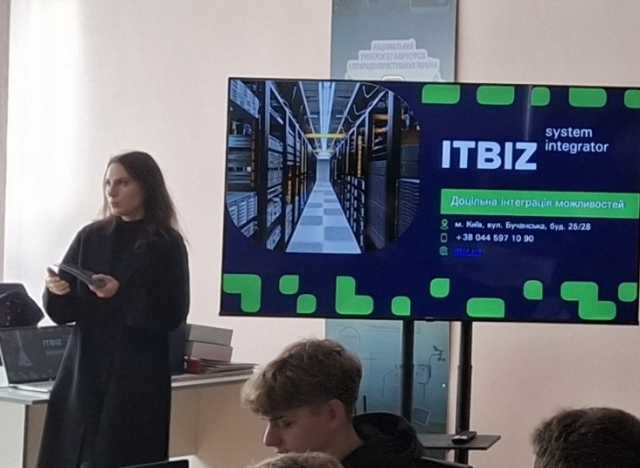 Зустріч студентів 3 та 4 курсу Факультету інформаційних технологій НУБіП України (спеціальності 121: «Інженерія програмного забезпечення», 122: «Комп'ютерні науки», 123: «Комп'ютерна інженерія», 125: «Кібербезпека», 126: «Інформаційні системи і технології») з представниками провідного системного інтегратора ТОВ «Айті Бізнес Солюшн» (ITBIZ).
