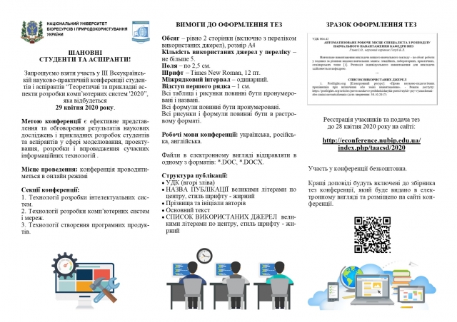 Запрошуємо взяти участь у ІІI Всеукраїнській науково-практичній конференції студентів і аспірантів “Теоретичні та прикладні аспекти розробки комп’ютерних систем '2020”