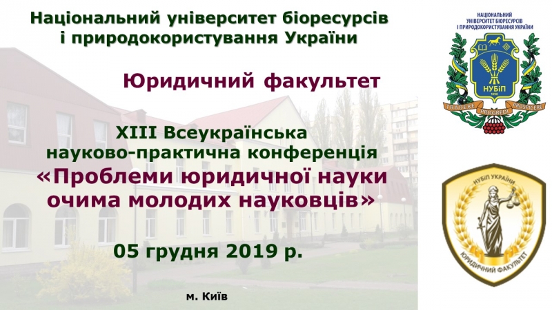 Запрошуємо взяти участь у ХІІІ Всеукраїнській науково-практичній конференції "Проблеми юридичної науки очима молодих науковців", 05 грудня 2019 року