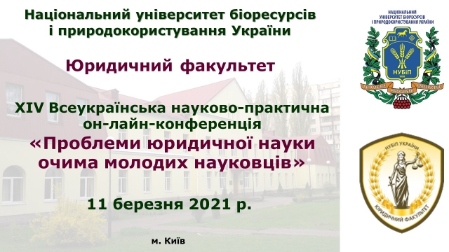 Запрошуємо взяти участь у ХІV Всеукраїнській науково-практичній онлайн-конференції "Проблеми юридичної науки очима молодих науковців", 11 березня 2021 року