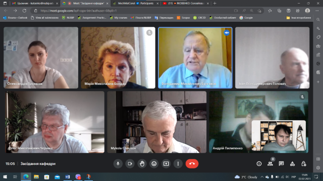 Першим було розглянуто питання про готовність НПП кафедри до початку весняного семестру 2022-23 н.р. Всі НПП відзначили, що розклад кафедри повністю сформований і узгоджений з диспетчерською службою НУБіП України.