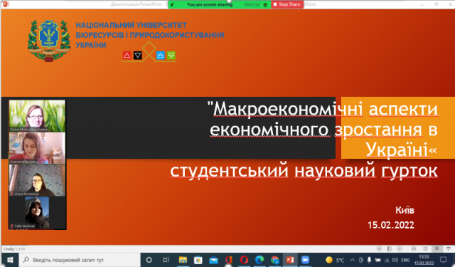 Засідання студентського наукового гуртка «Макроекономічні аспекти економічного зростання в Україні» кафедри економічної теорії факультету аграрного менеджменту НУБіП України Засідання студентського наукового гуртка «Макроекономічні аспекти економічного зростання в Україні» кафедри економічної теорії факультету аграрного менеджменту НУБіП України 15 лютого 2022 року 20:57 - 20:57