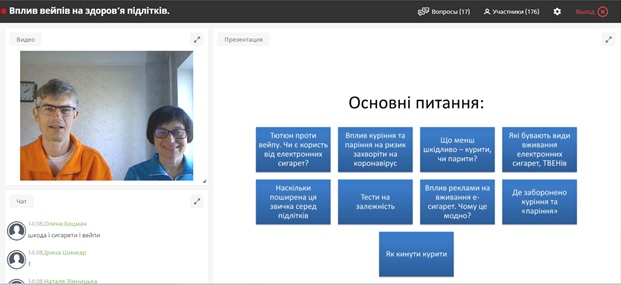 Спікери вебінару – Ірина Цісар (соціальний працівник Київського міського центру соціальних служб для сім’ї, дітей та молоді) та Отто Стойка (к.мед.н., лікар-методист Київського міського Центру громадського здоров’я) не тільки розповідали про власний досвід та дані ВООЗ, але й заохочували учасників висловити свої враження. Побажань і коментарів було так багато, що часу, відведеного для цього, не вистачило для відповіді на запитання всіх учасників.