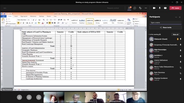 Зважаючи на це, 16 квітня 2021 року відбулася робоча зустріч між представниками Національного університету біоресурсів і природокористування України та Університету Вітовта Великого (м. Каунас, Литва). У ній взяли участь: директор навчально-наукового центру міжнародної діяльності НУБіП Олександр Лабенко, декан факультету землевпорядкування Тарас Євсюков та координатор міжнародних програм факультету землевпорядкування В'ячеслав Богданець. До складу делегації литовських колег увійшли: декан факультету землевпорядкування і водного господарства Університету Вітовта Великого Алгіс Квараціеус, його заступник Рітіс Скомінас, директор інституту землеустрою та геоматики факультету землевпорядкування і водного господарства Йоланта Вальчукієне і доцент інституту землеустрою та геоматики Вірджинія Гурскієне.