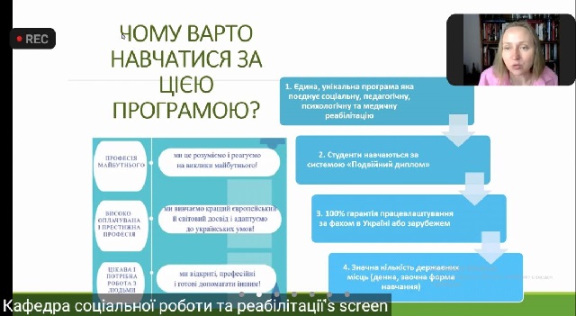 Науково-педагогічні працівники кафедри разом із здобувачами надали практичні поради, які допоможуть написати мотиваційний лист і зробити його більш конкурентоздатним і переконливим. Старший викладач кафедри Руслана Миколаївна Білик вдало модерувала захід та акцентувала увагу випускників на перевагах НУБІП України, особливостях спеціальності та власне, на особистісній унікальності (індивідуальності) молодої людини. Вікторія Андріївна Будегай щедро поділилась зі слухачами обґрунтованими прикладами формулювань кожного структурного компонента мотиваційного листа. Також майбутні абітурієнти отримали всю необхідну інформацію щодо вступу до Національного університету біоресурсів і природокористування України, у тому числі за спеціальністю «Соціальна робота», ознайомилися із перевагами та винятковими можливостями навчання, дозвілля, активного студентського життя і подальшого працевлаштування.