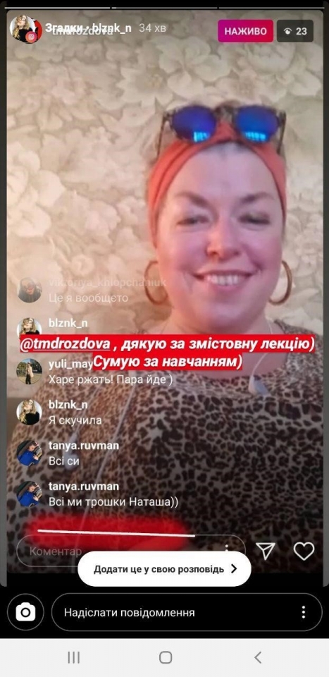 На думку студентів, це була чудова ідея для проведення семінарського заняття. Саме в цій соціальній мережі більшість студентів проводить багато вільного часу. Незважаючи на карантин довгоочікувана зустріч відбулася, студенти залишилися надзвичайно задоволеними! Розмова була дуже цікавою, вони дізналися про різні види маніпуляції. Дуже цікаво було слухати про коронавірус. Не зважаючи на те, що кожного дня спільнота чує щось нове, багато інформації є незрозумілою. Такий спосіб для спілкування з викладачем, зацікавив студентів. Наступного разу Лариса Валентинівна проведе зустріч 18 квітня, розмова буде про «Медіапсихологію».