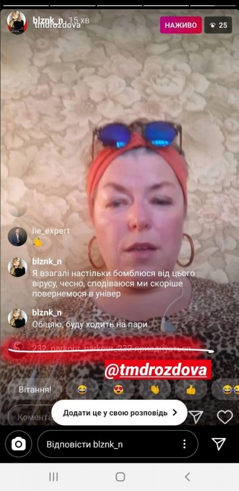 14 квітня викладач кафедри журналістики та мовної комунікації Дроздова Лариса Валентинівна провела прямий ефір семінару в мережі Instagram. Свою зустріч викладач назвала «Медіапростір – гра на виживання». Розмова зі студентами відбувалася протягом години.