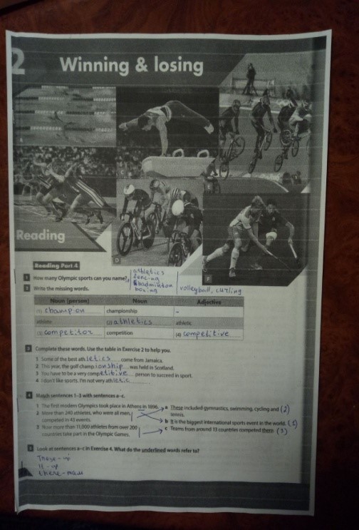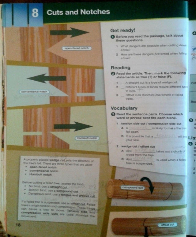 Зокрема, вивчення теми «Cuts and Notches» передбачало роботу з відповідною лексикою (див. скріншот 2), виконання вправ з підручника (скріншоти 3-4), перегляд презентації (скріншот 5) та відео (скріншоти 6-9).
