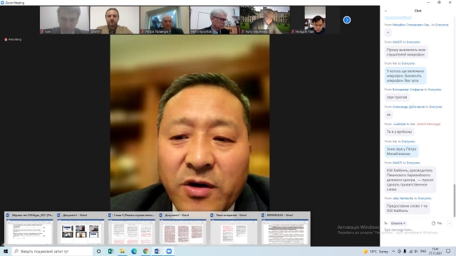 Розпочав збори Президент АІНУ Петро Михайлович Таланчук, далі слово взяв Перший віце-президент АІНУ Петро Олексійович Киричок. віце-президент АІНУ Володимир Іванович Кравчук, член Президії АІНУ Сергій Сергійович Рижков, віце-президент АІНУ Василь Борисович Струтинський, академік АІНУ Юй Хайбинь (керівник Пекинського Євразійського ділового центру), академік АІНУ Віктор Дмитрович Ковальов, академік АІНУ Петро Петрович Мельничук, академік АІНУ Лі Йонг (директор Шеньженського університету). Всі вони представили результати проведеної роботи. Виступаючі підтримали запропоновану стратегію розвитку АІНУ.