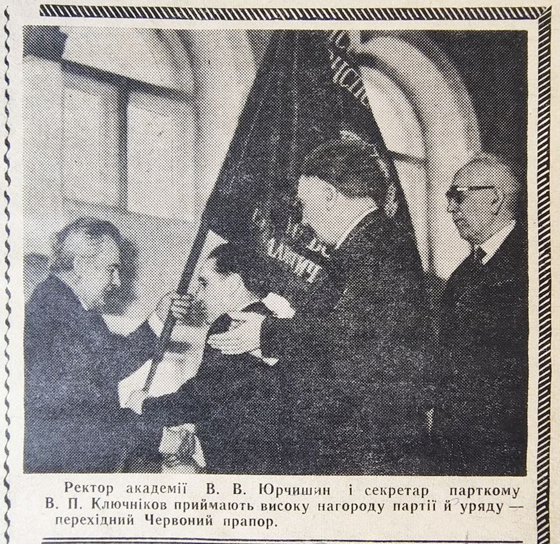 1974 рік. Фото ректора В.В. Юрчишина на фотопланшетці Педагогічного факультету Української сільськогосподарської академії : [фонд музею історії НУБіП України].