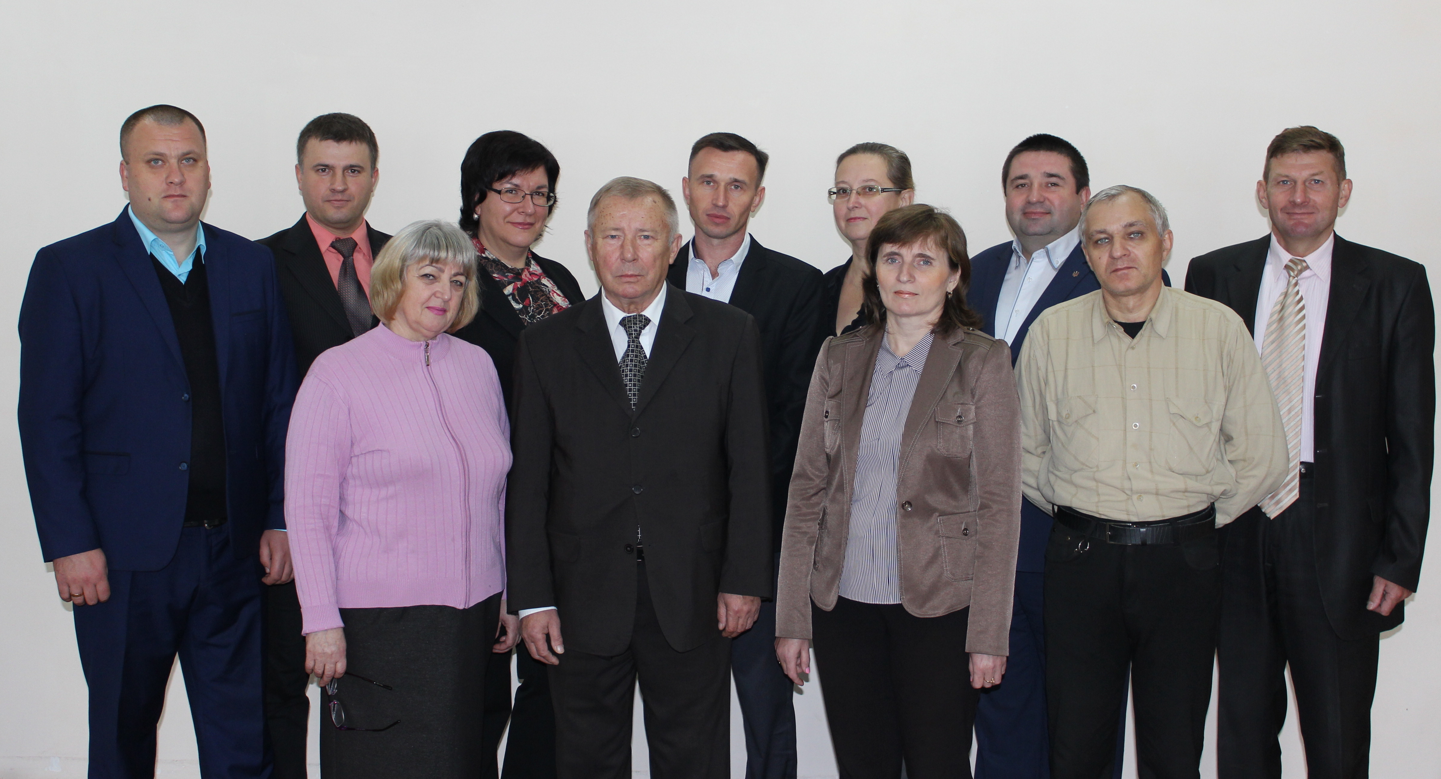 1 ряд – ст. викладач О.В. Мартиненко, майстер виробничого навчання Н.М. Пчелінова, зав. кафедри, професор Ю.Г. Сухенко, декан факультету харчових технологій та управління якістю продукції АПК, професор Л.В. Баль-Прилипко, доцент В.П. Василів, доцент М.М. Муштрук;