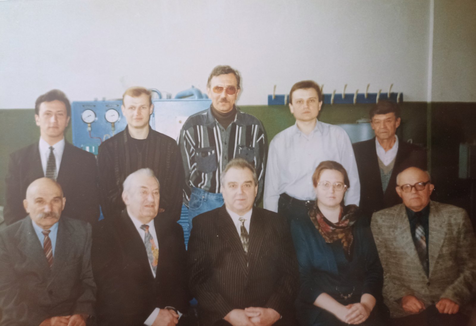 1 ряд – завідувач лабораторіями Кобилківський Віктор Миколайович, доцент Чубов Дмитро Сергійович, завідувач кафедри, професор Дацишин Олександ Володимирович, лаборант Ільякова Людмила Іванівна, доцент Ткачук Анатолій Іванович;