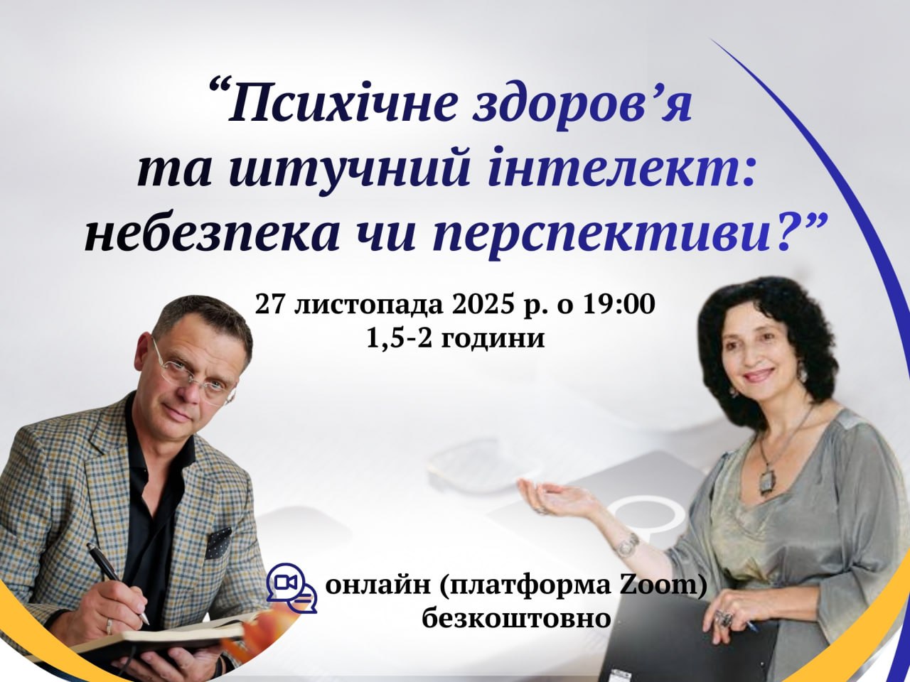 Професійний вебінар-дискусія "Психічне здоров’я та штучний інтелект: небезпека чи перспективи?" 27 листопада 2025 року 19:00 - 21:00