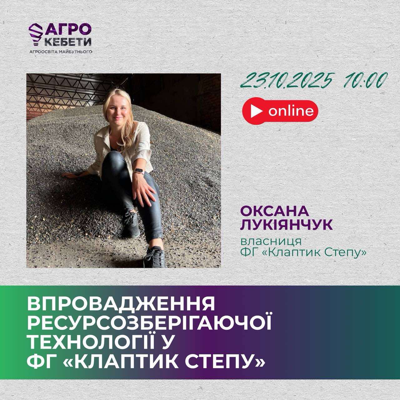 Практики впровадження ресурсозберігаючої технології у фермерському господарстві 23 жовтня 2025 року 10:00 - 11:30