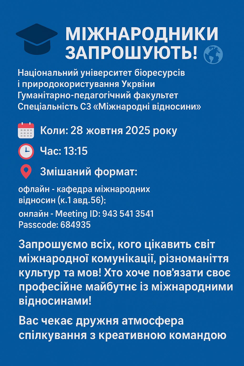 Всеукраїнський студентський науково-практичний вебінар «ООН - 80: чи виповниться 100?», присвячений 80-річчю утворення Організації Об’єднаних Націй До відома наукової молоді та усіх, хто цікавиться історією міжнародних відносин та зовнішньої політики України! 21 жовтня 2025 року 09:26 - 17:26