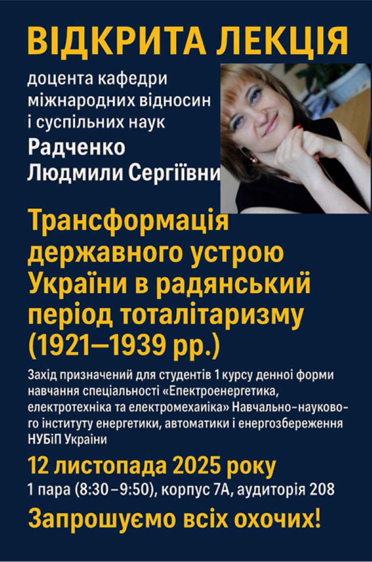 Відкрита лекція доцента кафедри міжнародних відносин і суспільних наук Радченко Людмили Сергіївни 12 листопада 2025 року 07:27 - 16:27
