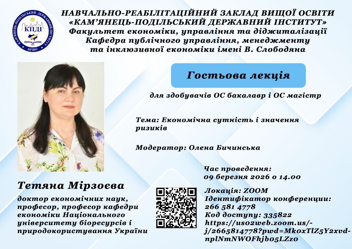 Відкрита лекція доцента кафедри економіки Наталії СУЛІМИ