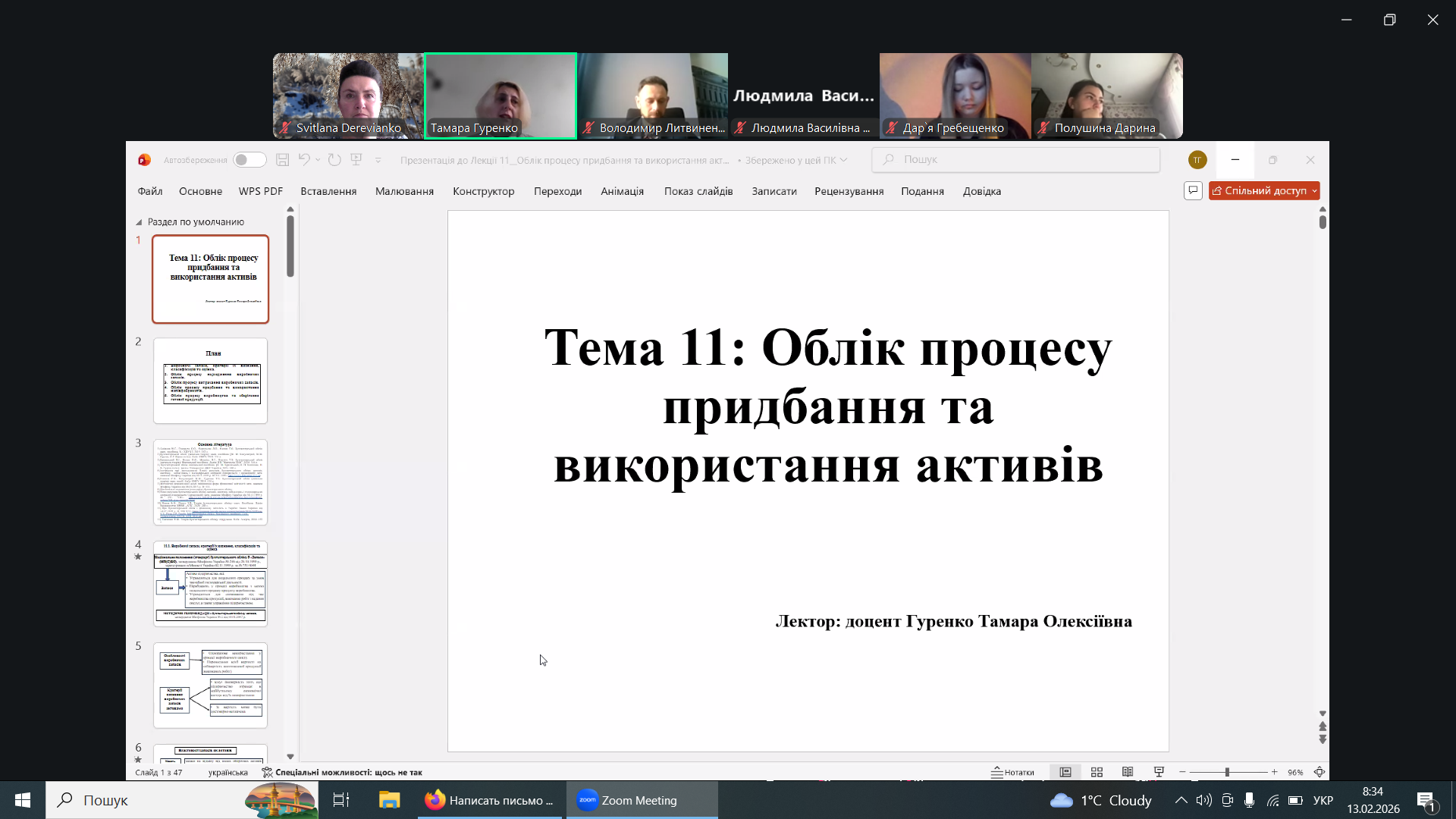 13.02.2026 р. на 1 парі (8:30-9:50) відбудеться відкрита лекція доцента кафедри обліку та оподаткування Гуренко Тамари Олексіївни