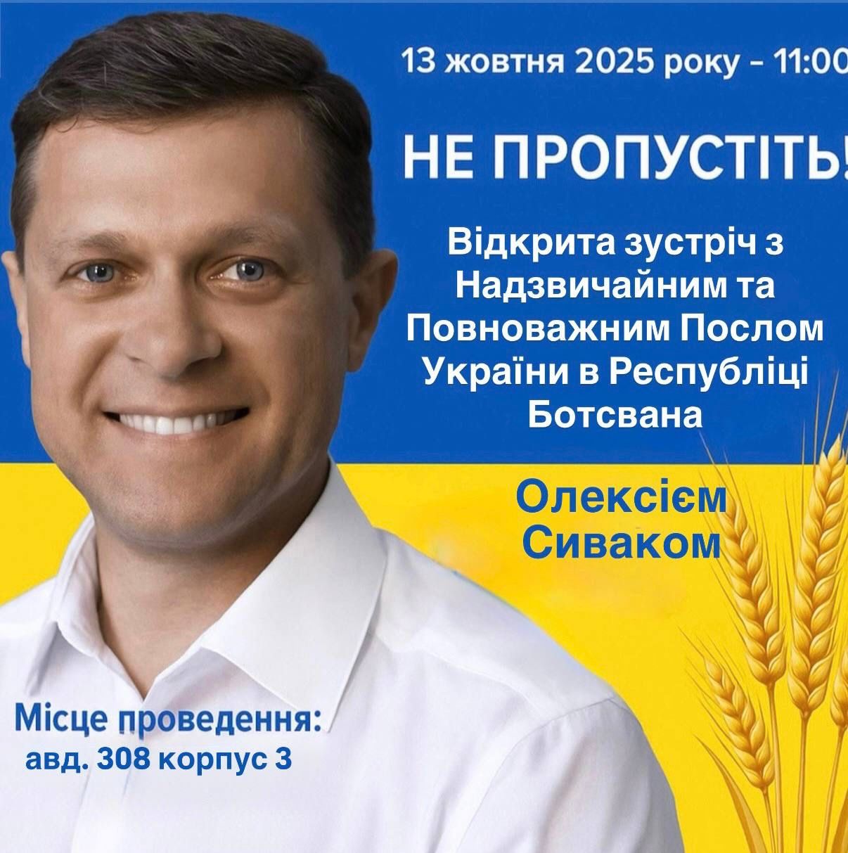 Відбулася відкрита зустріч з Надзвичайним і Повноважним Послом України в Республіці Ботсвана Олексієм Сиваком