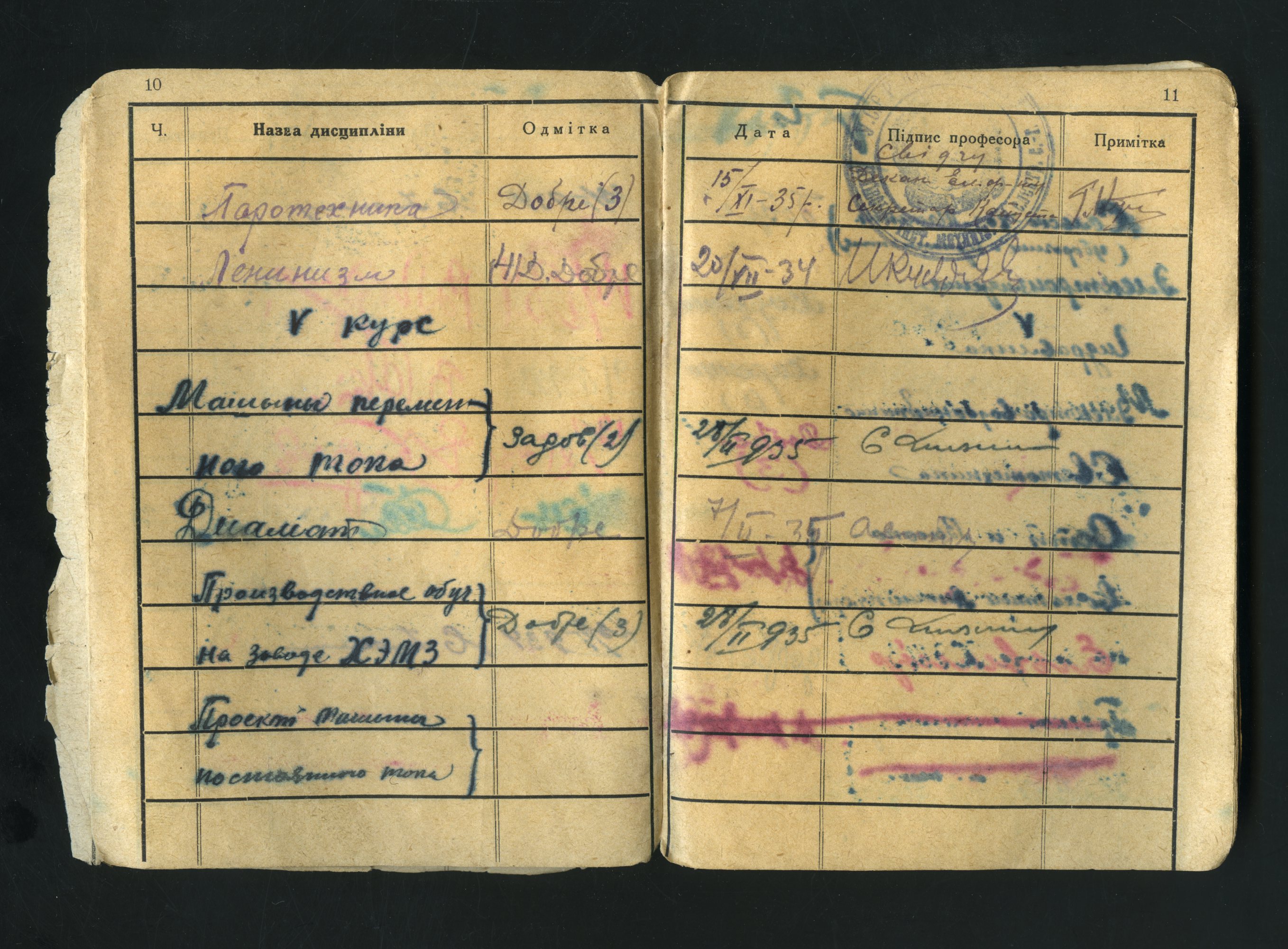 1938 рік. Залікова книжка (електронна копія). Київський сільськогосподарський інститут. Факультет електрифікації сільського господарства