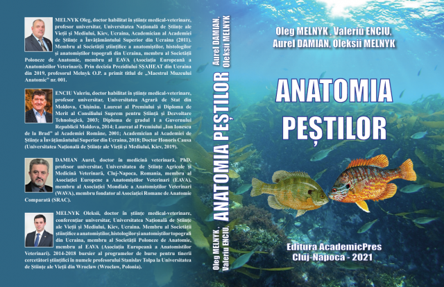 7. Oleg Melnyk, Valeriu Enciu, Aurel Damian, Oleksii Melnyk / Anatomia peştilor. Editura AcademicPres, Cluj-Napoca, 2021, 530 p. ISBN 978-973-744-852-1.