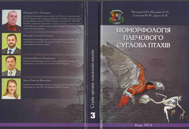 5. Мельник О.П., Мельник О. О., Стегней М. М., Друзь Н.В., С-79 Біоморфологія плечового суглоба птахів: Монографія – Київ.: Аграр Медіа Груп. – 2024. – 284 с.