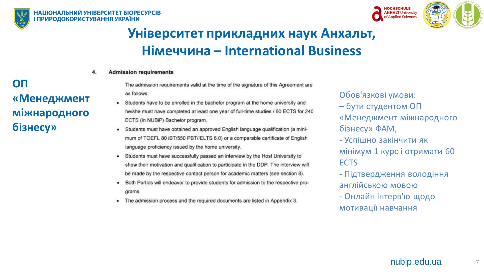 Міжнародні освітні програми з можливістю отримати подвійний диплом університету-партнера та НУБіП України