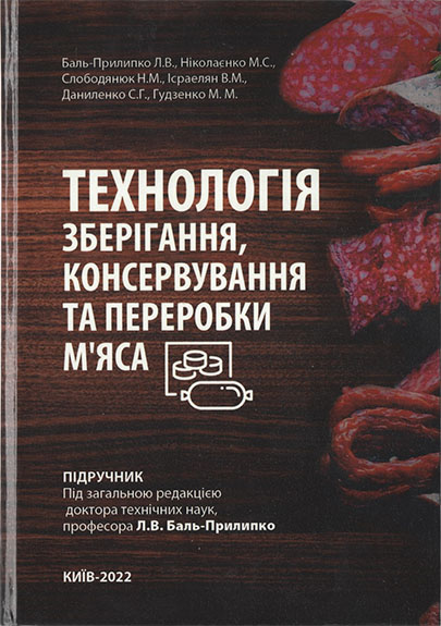 - Технологія зберігання, консервування та переробки м'яса / Підручник, 2-ге видання, доповнене / Л.В. Баль-Прилипко, М.С. Ніколаєнко, Н.М. Слободянюк, В.М. Ісраелян, С.Г. Даниленко, М.М. Гудзенко – Вид. 2-ге, випр. та доп.– К.: НУБіП України, 2022. – 367 с.
