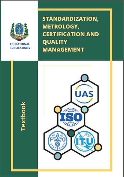 - Стандартизація, метрологія, сертифікація та управління якістю: підручник. Вид. 2-ге, переробл. і допов. / Баль-Прилипко Л.В., Ніколаєнко М.С., Берник І.М., Швець О.В., Толок Г.А., Науменко Т.В., Рибчинський Р.С. / За ред. Л.В. Баль-Прилипко. – Київ : НУБіП України, 2024. – 378 с.