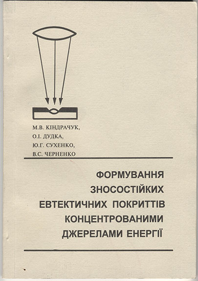 - Формування зносостійких евтектичних покриттів концентрованими джерелами енергії: Навч. посібник / М.В. Кіндрачук, О.І. Дудка, Ю.Г. Сухенко, B.C. Черненко. Під ред. М.В. Кіндрачука. – К.: ІЗМН, 1997. – 119 с.